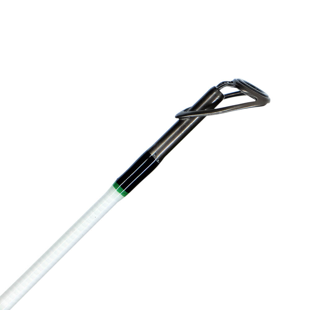 This rod is designed to cast heavy weights and bigger baits from an anchored boat. It’s the ideal choice for winter cod fishing and targeting tope, bass, and rays during warmer months. The tip provides excellent bite indication while remaining stiff enough to handle strong tides. With a powerful butt and mid-section, the rod delivers the lift needed when fighting big fish in powerful currents. Its short butt and long tip configuration creates an optimal action curve for true power delivery and maximum feedback. Like the rest of the Guerilla range, the rod features a 1K weave throughout the butt section.