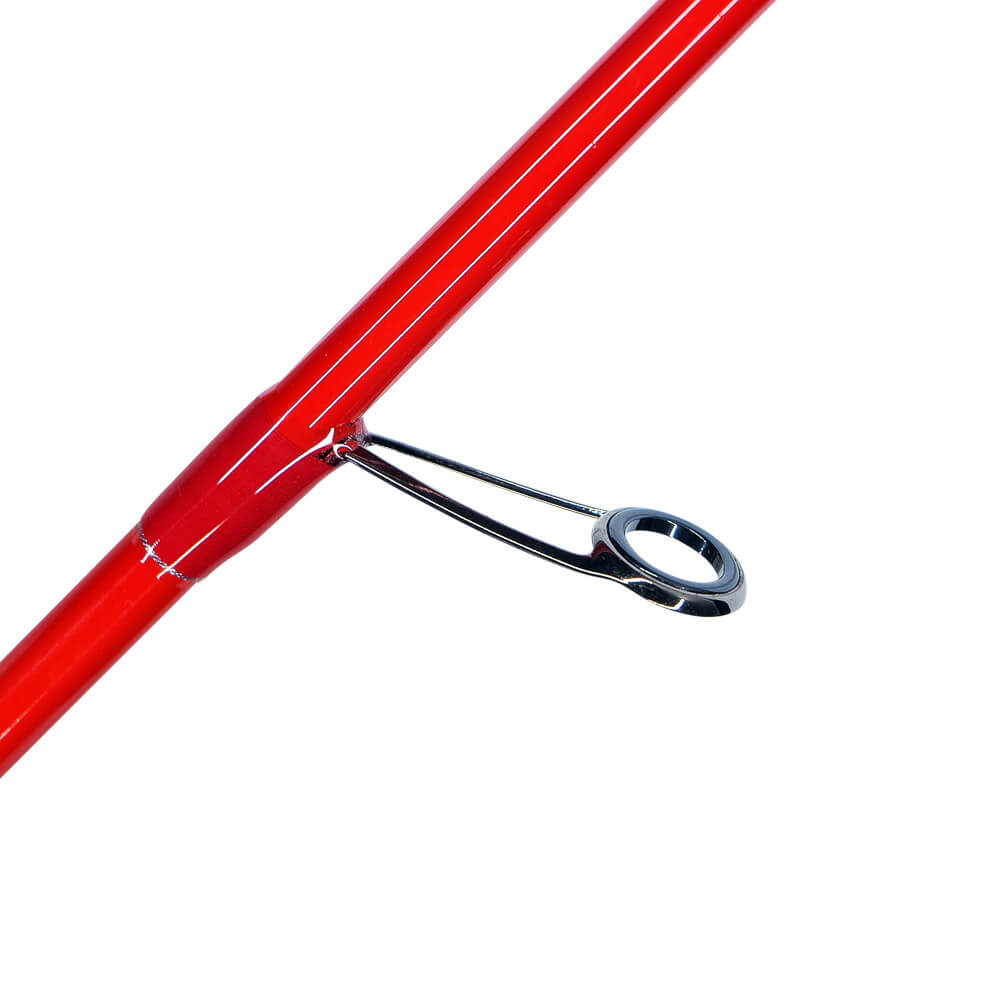 If you’re fishing heavier metals, soft plastics with bigger jig heads and large sized hard lures, this rod has the power to get them out there, but also, subdue the lunges of bigger fish. Built on a lightweight, responsive 24T carbon blank in a stunning red colour. The guides are quality SIC guides with red whipping and silver accents. The rod is finished off with a black collared IPS reel seat. It can be used for inshore bass lure fishing too.