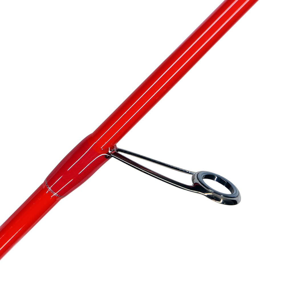 If you’re fishing with shads up to 20g, this is the tool to go for. A lovely responsive action of the lightweight 24T carbon blank makes this a great rod for fishing for bigger perch, pike, and zander. It’s also a nice rod for lighter shore fishing work for bass and smaller pollack. All finished off with SIC guides wound on with red whippings, with silver accents and a black collared IPS reel seat.
