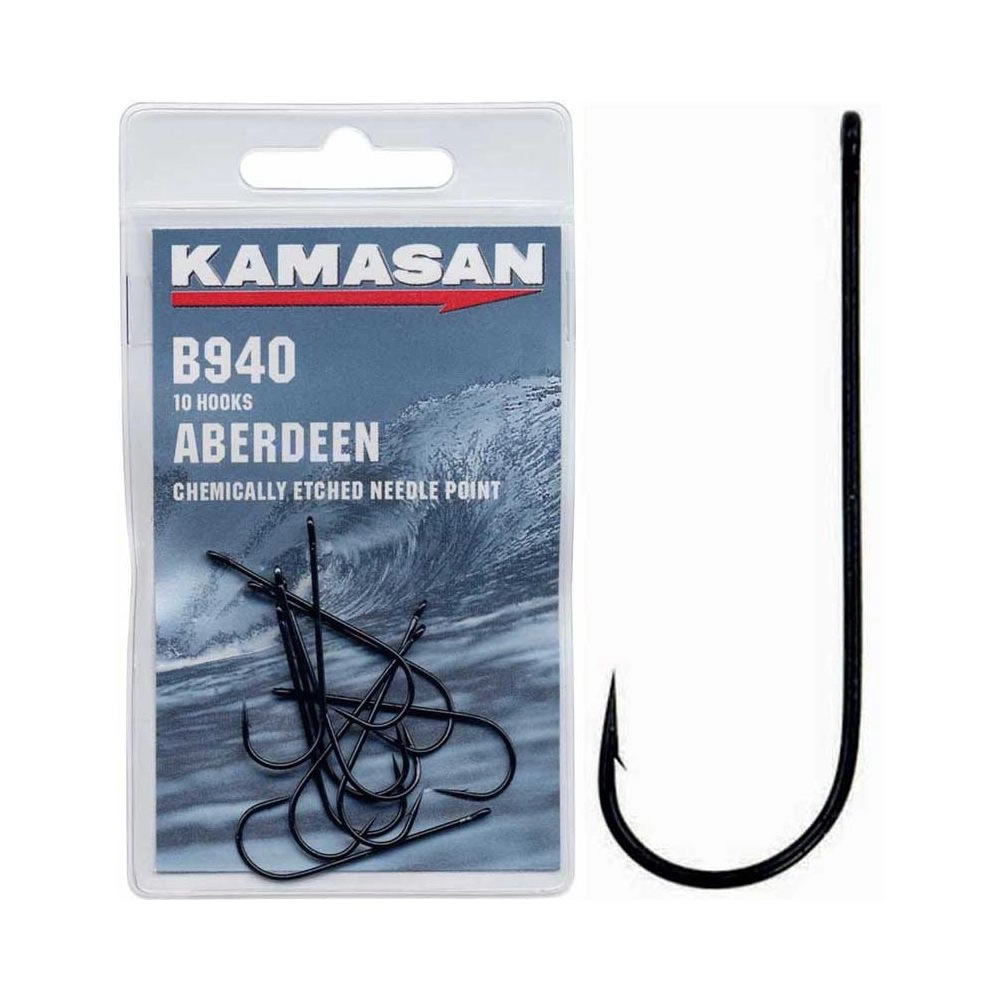 Kamasan’s B940 Aberdeen, possibly Europe’s most successful all-round sea hook. Manufactured from high carbon steel and chemically etched for precision sharpness. The round bend and long shank make it an exceptionally good hook for worms, as well as a wide range of other baits including sandeels.